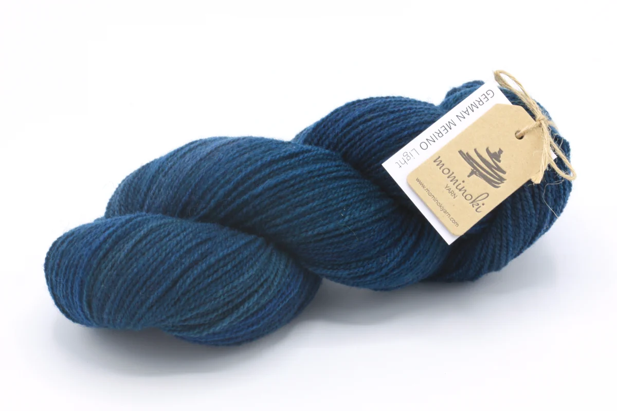 GERMAN MERINO Light is our original 2-ply knitting yarn. It is airy, light and rustic. Suitable for any project, especially for light, warm sweaters and accessories. With approx. 340m/100g it is a Sport/DK yarn weight.