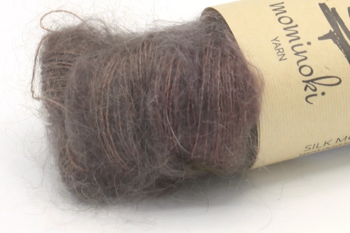 Our MOMINOKI SILK MOHAIR is a fluffy, airy blend yarn made from Superkid Mohair and silk. It is hand-dyed and can be knitted solo or together with other yarns.