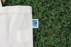 Baumwolltasche aus 100% Bio-Baumwolle mit Fairtrade und Organic Cotton Logo.