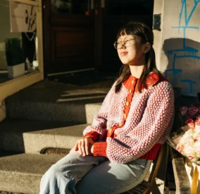 Pflegeanleitung: Getrennte Handwäsche mit lauwarmem Wasser. Strickstück liegend trocknen.